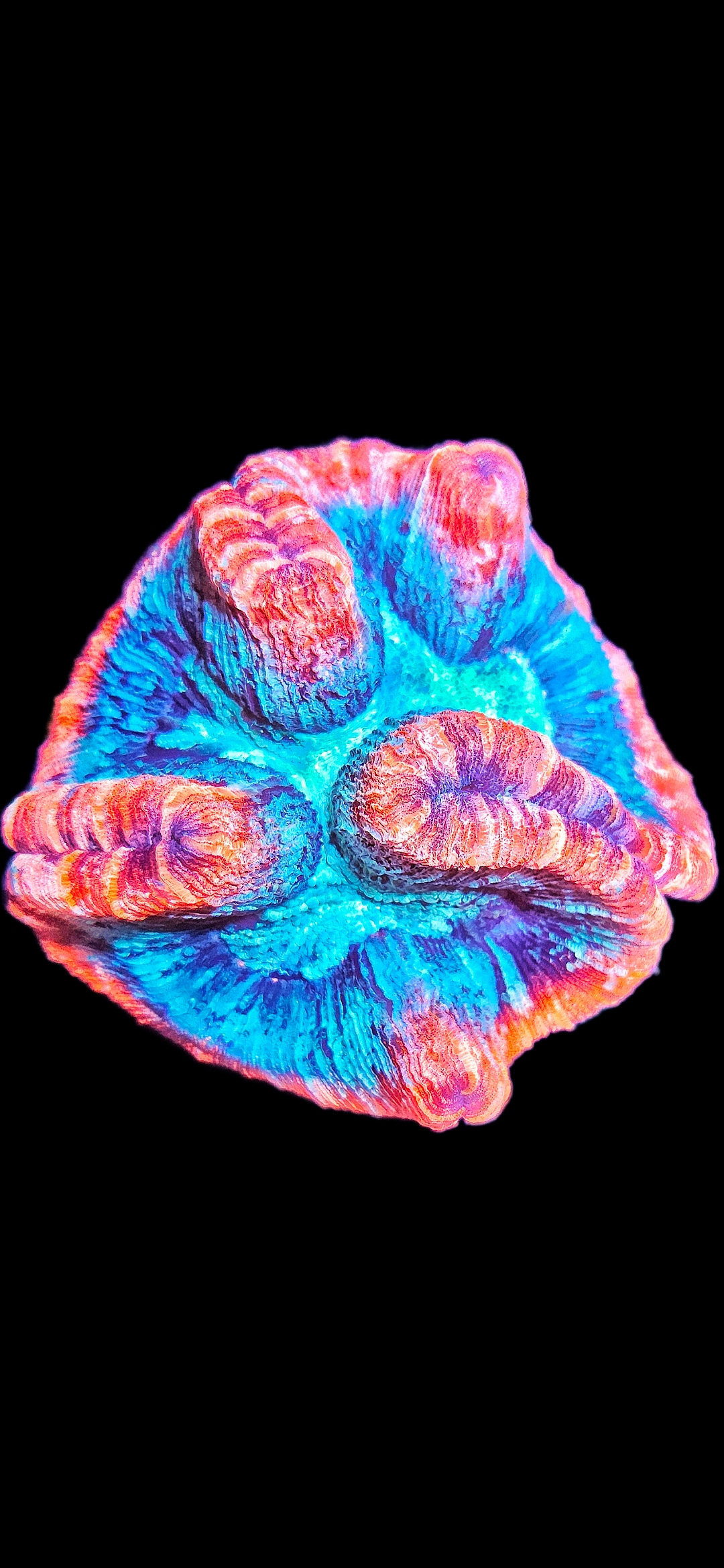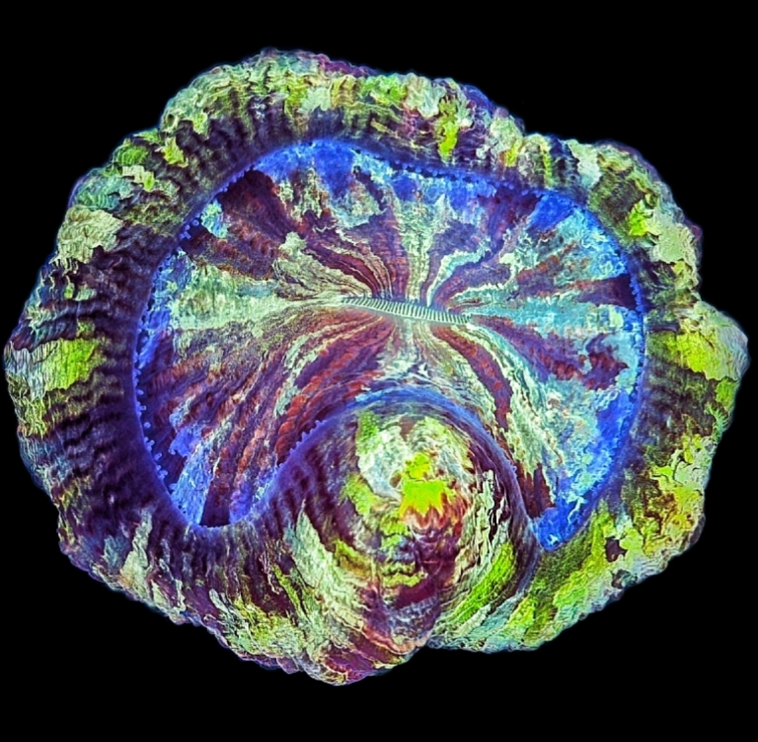 Trachyphyllia Geoffroyi Multicolor ist eine großpolypige Steinkoralle (LPS = kurzform für Large Polyp Scerlactinia) Trachyphyllias kommen vor allem in Innenriffbereichen, Lagunen und auf den Weichböden vor.